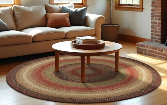 Oval braided rugs soften straight-lined rooms and neatly center dining sets, kitchens, and entryways (no sharp corners to curl).
