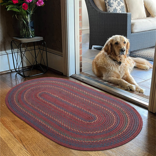 Highland Red, Navy & Cream Jute Oval Braided Rugs