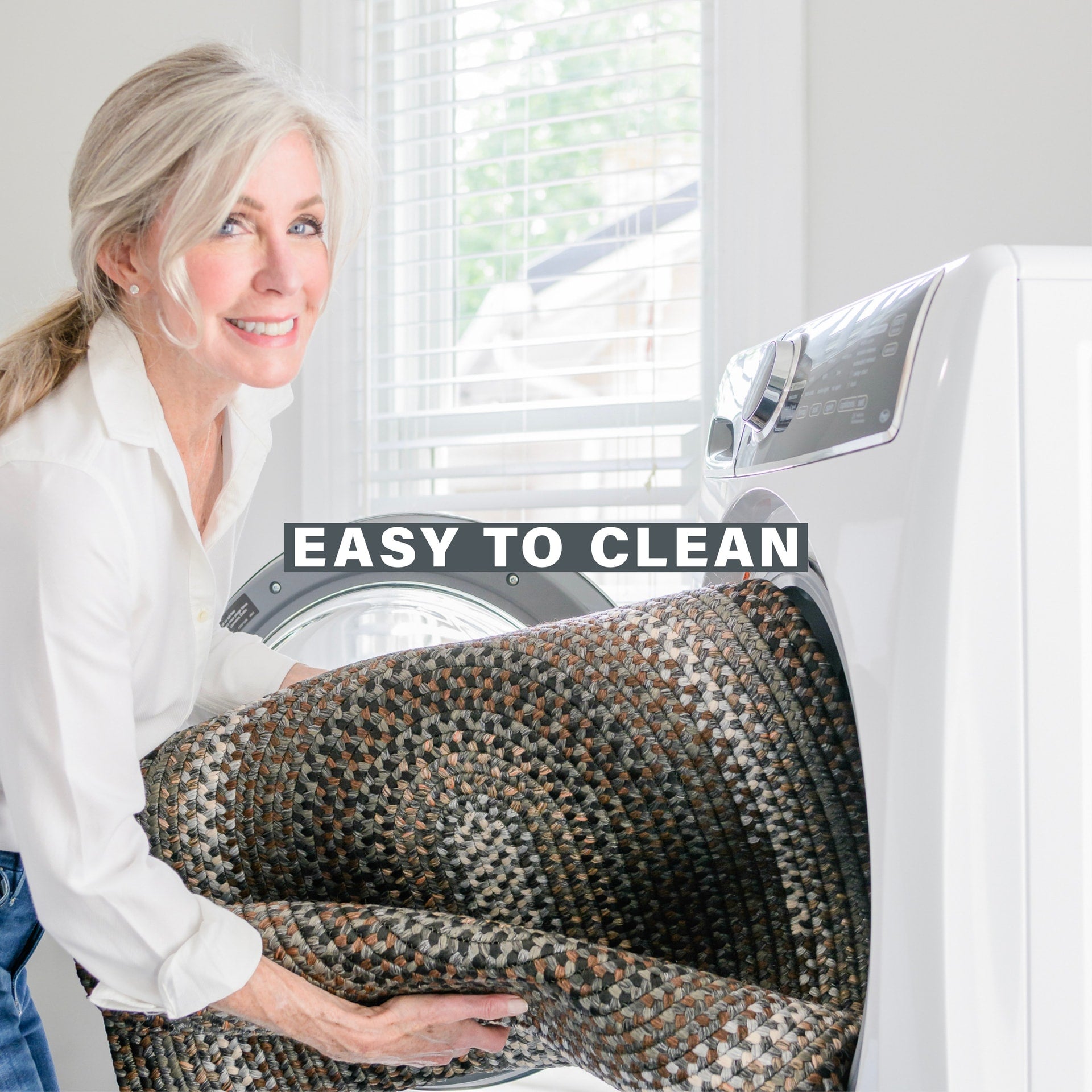 - LIVING ROOM, BEDROOM RUG: Luxurious, thick & comfortable. It will make the room more inviting. Sound is absorbed, making your space more cozy. Stain resistant feature (see video) means coffee spills do not stain. Pet Friendly - pet hair does not stick to the rug. This washable living room rug lays flat. It makes the room look elegant. Braided rugs are as classic as apple pie. Use as a cottage, country, boho rug. Contemporary, rustic, primitive, cabin, lodge or farmhouse living room rug.
